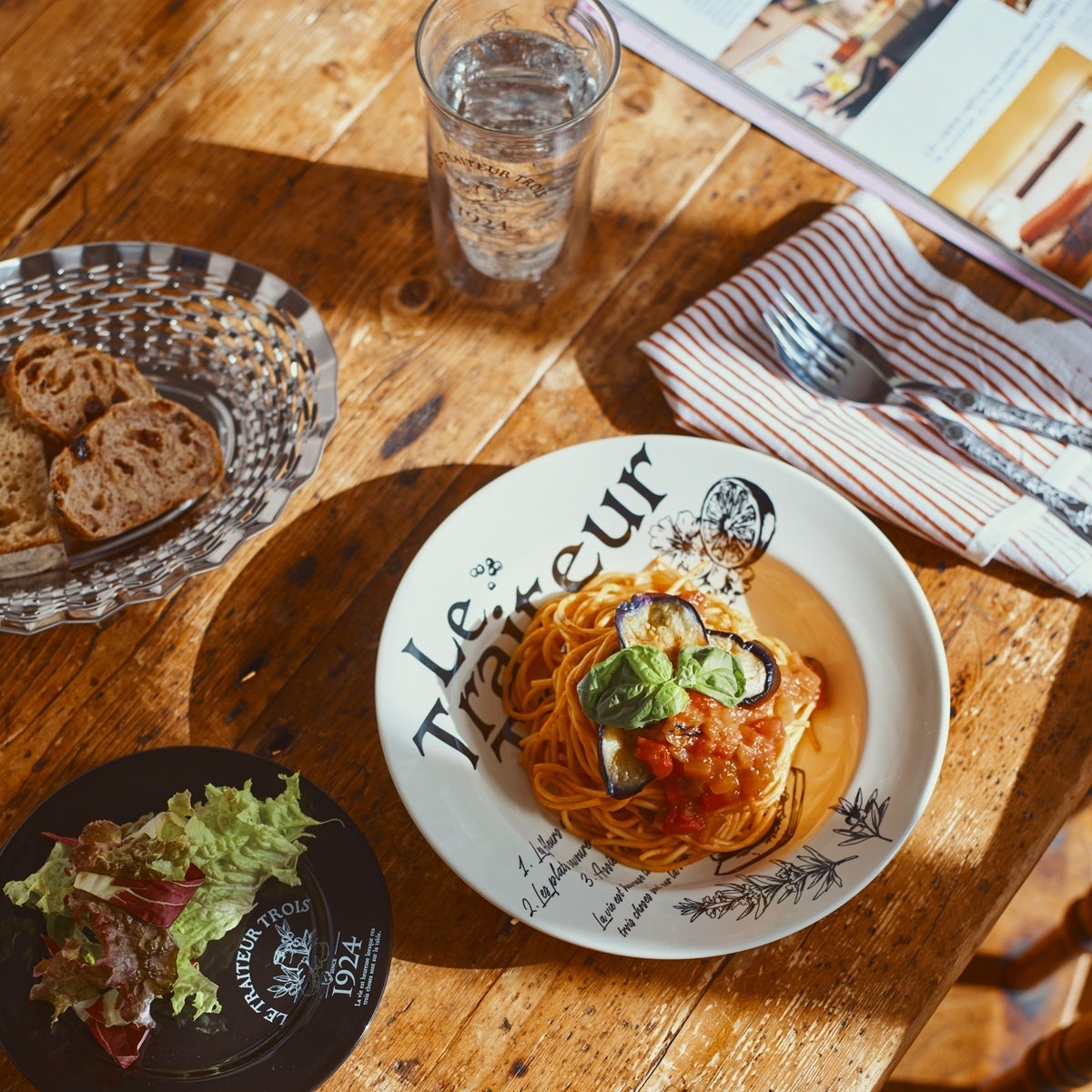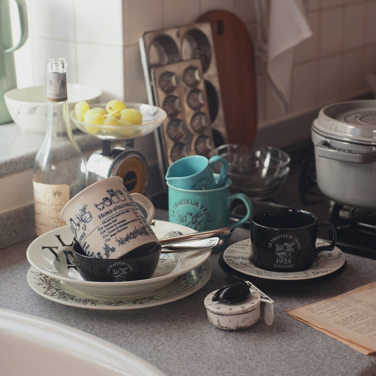 シンプルながらも上品な色合いとフォルムで、料理を引き立てるだけでなく、お家のテーブルにパリの空気感を添えます。