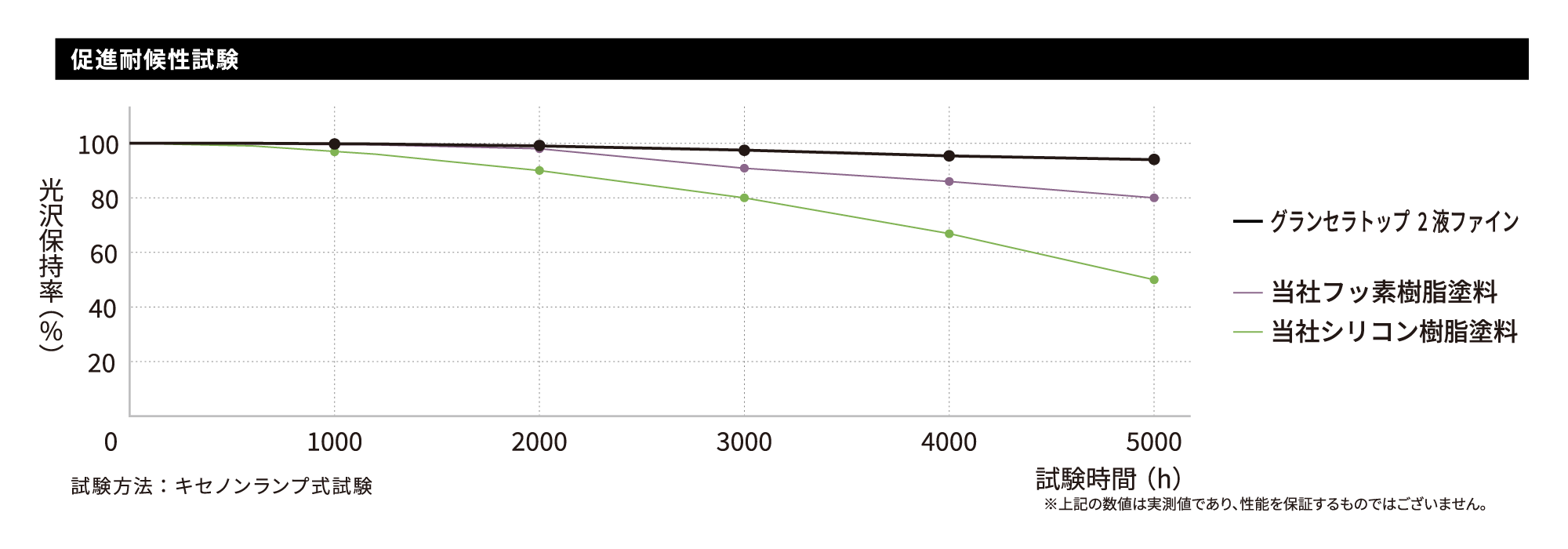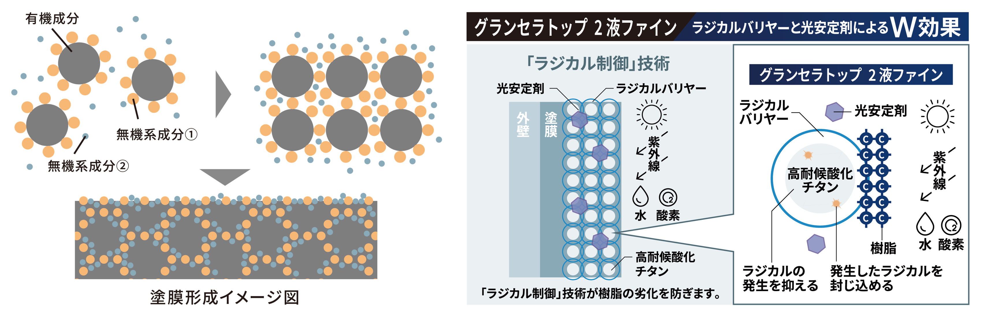 ラジカル制御技術とセラミックハイブリッド技術を融合させ、促進耐候性試験において優れた耐候性を示します。