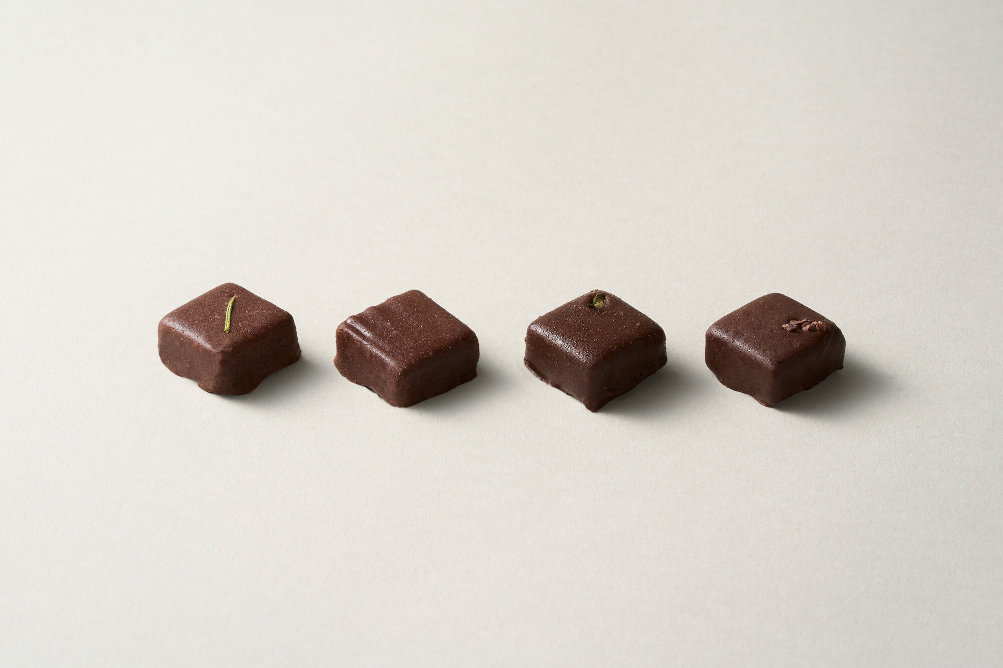 チョコレート職人横山による、意外性のある和素材も用いた個性の光る4種