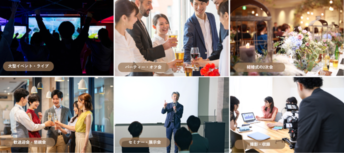 また、音響・照明設備も充実しているため、結婚式の2次会、企業イベント、ライブや展示会など多くの用途でご利用いただけます。無料で内見もできるため、事前に施設の雰囲気やレイアウトを確認の上、イベントの計画を進めることができます。