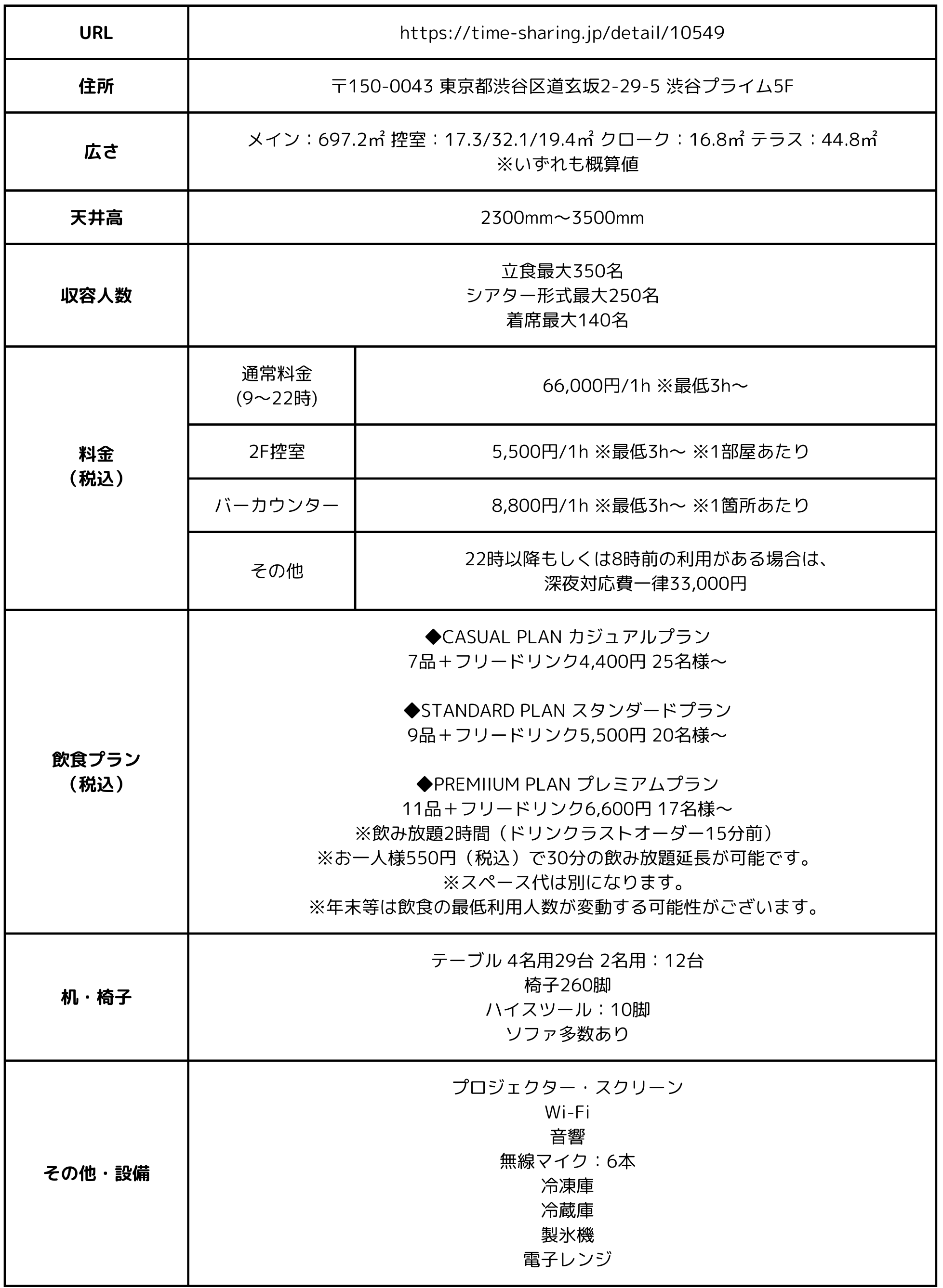 住所:〒150-0043 東京都渋谷区道玄坂2-29-5 渋谷プライム5F