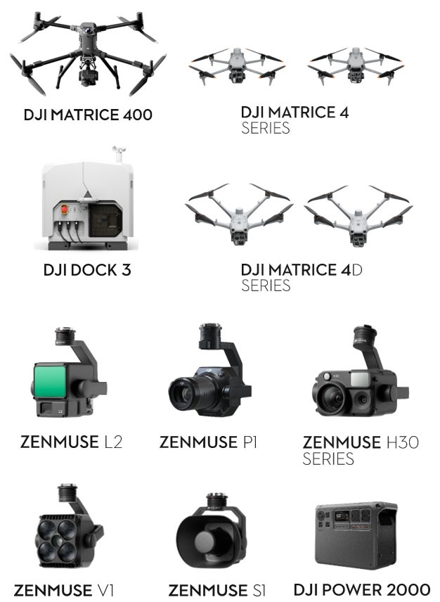 ・DJI MATRICE 4 SERIES / DJI MATRICE 4T, DJI MATRICE 4E ・DJI MATRICE 400 ・DJI MATRICE 4D, DJI MATRICE 4TD ・DJI DOCK 3 ・ZEMMUSE P1, ZEMMUSE L2, ZEMMUSE H30 SERIES ZEMMUSE S1, ZEMMUSE V1 ・DJI POWER 2000 *展示製品は変更になる場合がございます。 |