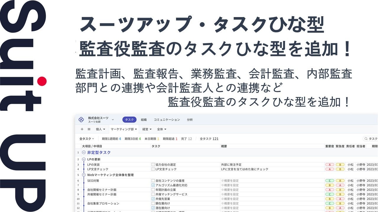 チームのタスク管理・プロジェクト管理ツール「スーツアップ」、監査役監査のタスクひな型の追加のお知らせ