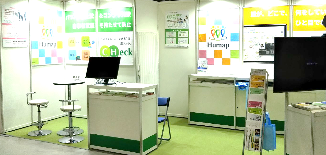 Humapのブース(15-34)では、在席管理ツール「せきなび」や ハラスメント&コンプラ調査「CHeck」のアンケート画面などを実際にご覧いただけるデモ機をご用意。