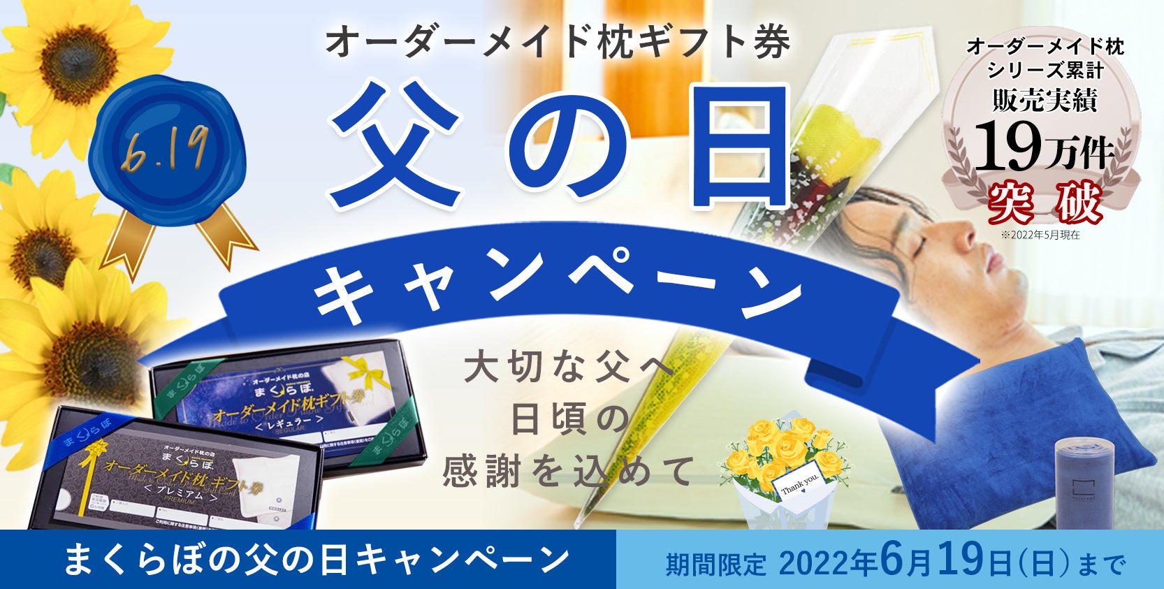 また、6月19日の父の日に合わせ、まくらぼオンラインショップでは「父の日キャンペーン」を実施しています。お父さんがいびきで悩んでいたら、この機会に世界にひとつだけのオーダーメイド枕をプレゼントしませんか?