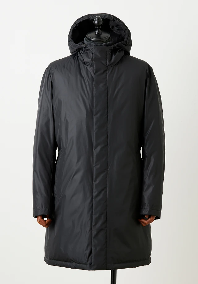 スーツにもぴったりのロング丈で着ぶくれしないスマートなシルエットを実現。