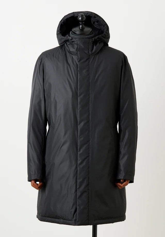 暖かさだけでなく、スーツの上から着用してもスマートに見えるオーダーダウンコート。身頃のダウン量に対して袖のダウン量を少なくパーツによって変えることで、見た目の美しさを重視しています。中綿は、ボール中綿とダウンの2種類からお選びいただけます。近年ビジネスパーソンに人気の高いダウンコートです。