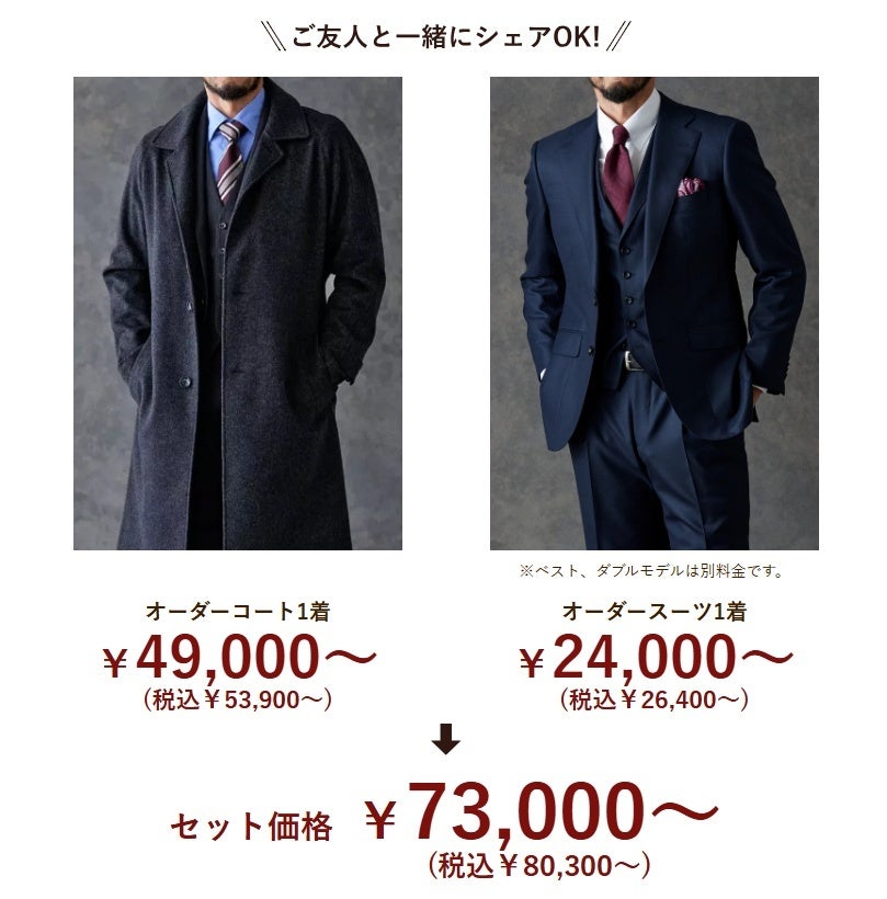 美しくエレガントなシルエットのオーダーコート・オーダースーツがこの価格