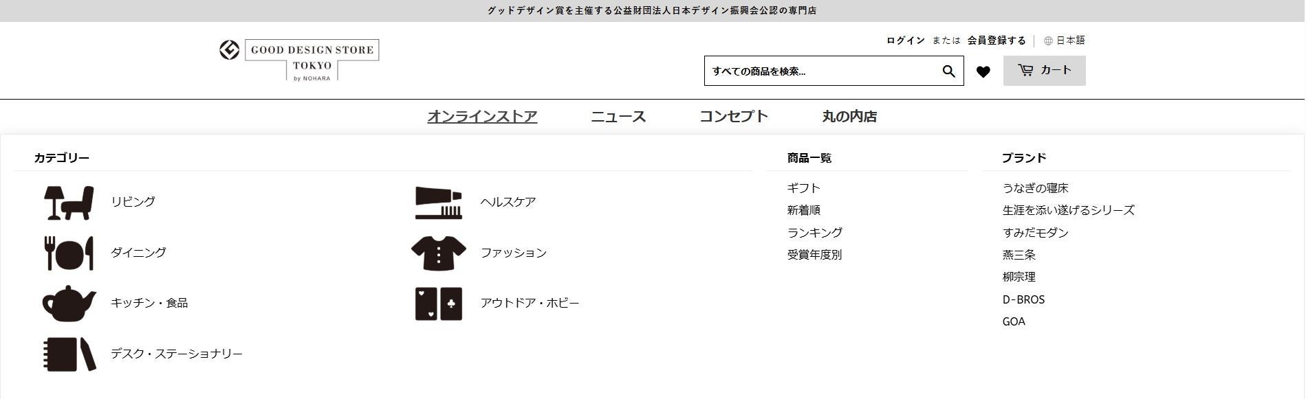 オンラインストアでは、カテゴリ別アイテムランキングや丸の内店の期間限定催事の取扱商品の販売を実施しています。全国のお客様が、60年の歴史があるグッドデザイン賞の今と昔を楽しみ、実際にお買い求めいただけます。