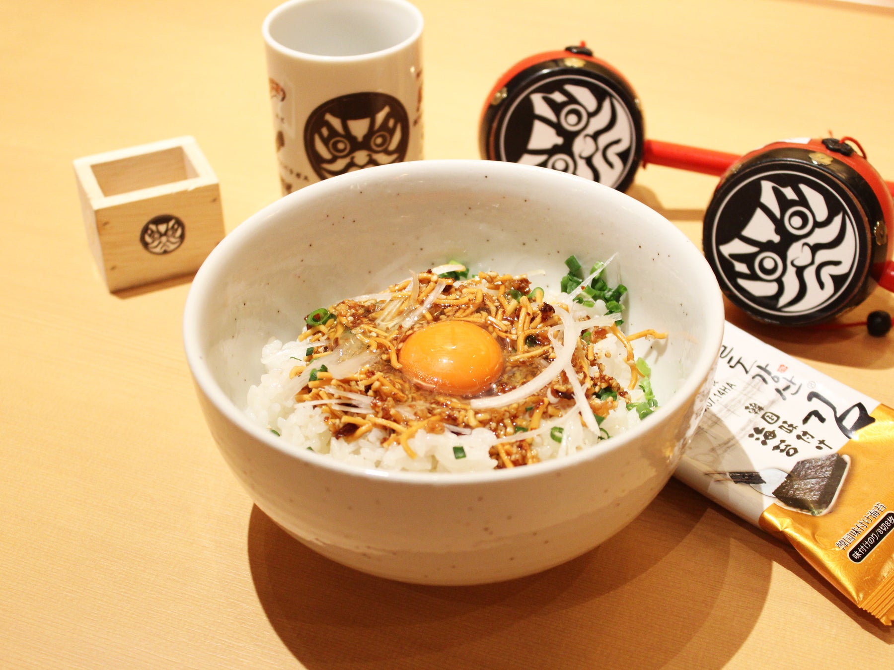 食べるラー油にアレンジした「ベビースターラーメン」と卵飯祭りで優勝した「日本一の卵」のコラボメニュー。サクサク食感のベビースターとフライドオニオン入りのラー油は濃厚な卵黄との相性抜群です。韓国ノリで巻いて味変もお楽しみいただけます。