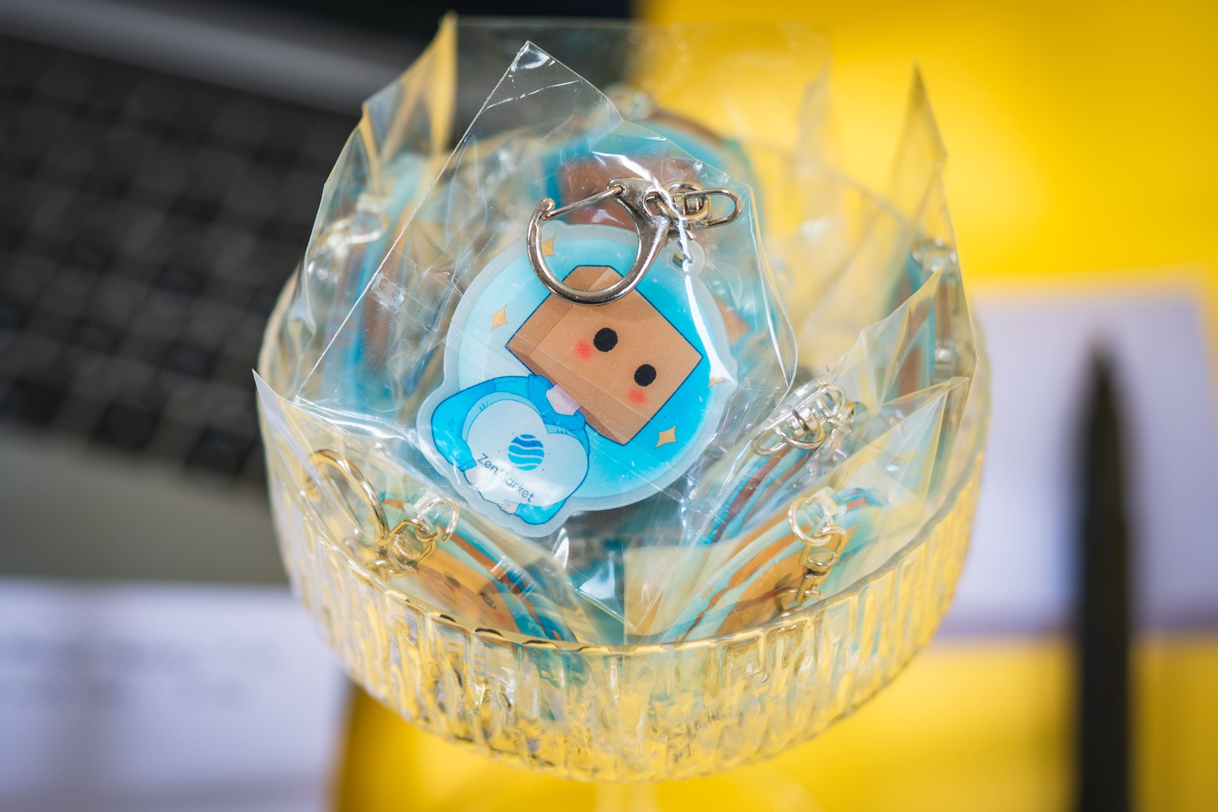 4月に梱包される先着10,000件の荷物に、ゼンマーケットのイメージキャラクター「ボックスヘッドくん」のオリジナルアクリルキーホルダーを同梱します。