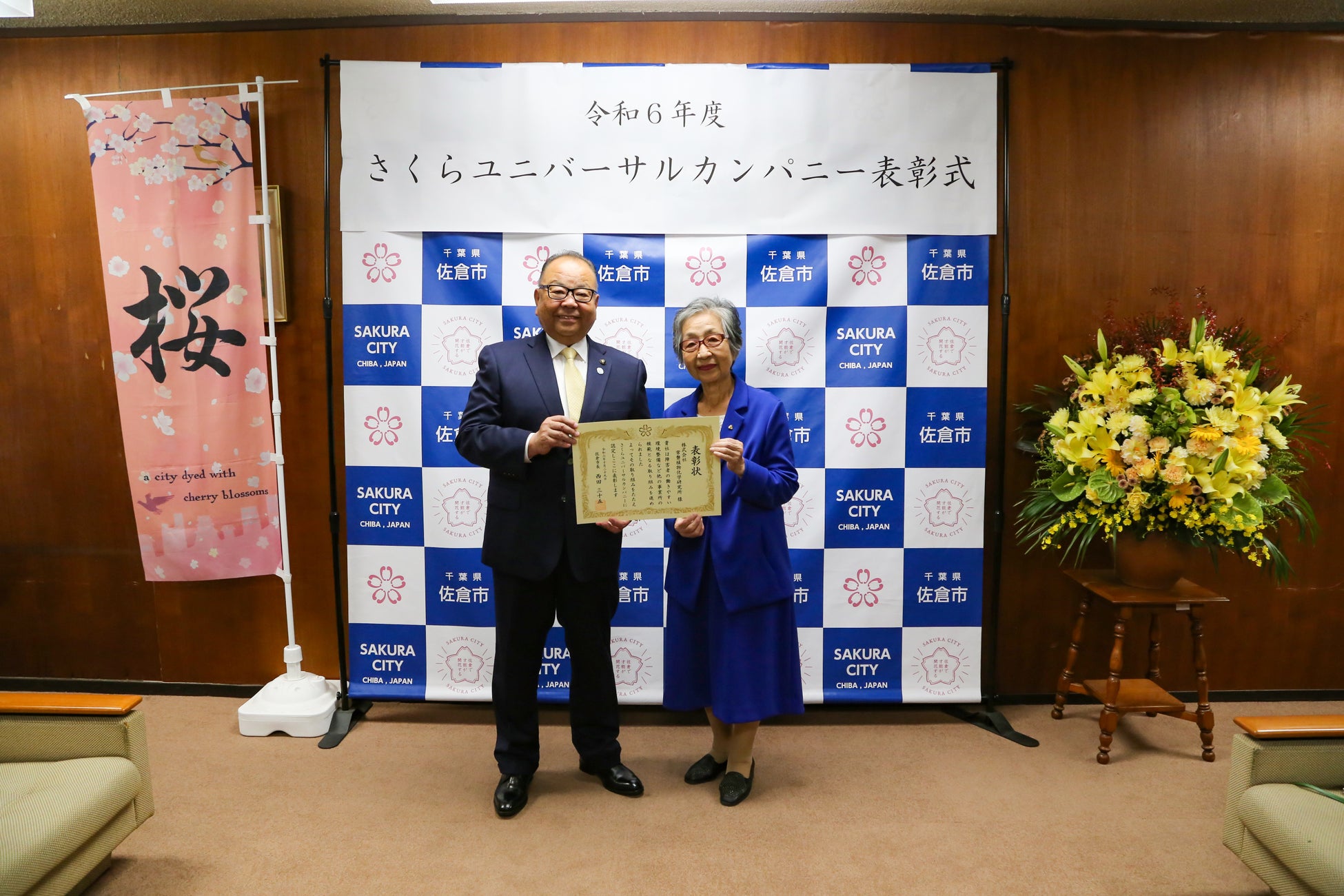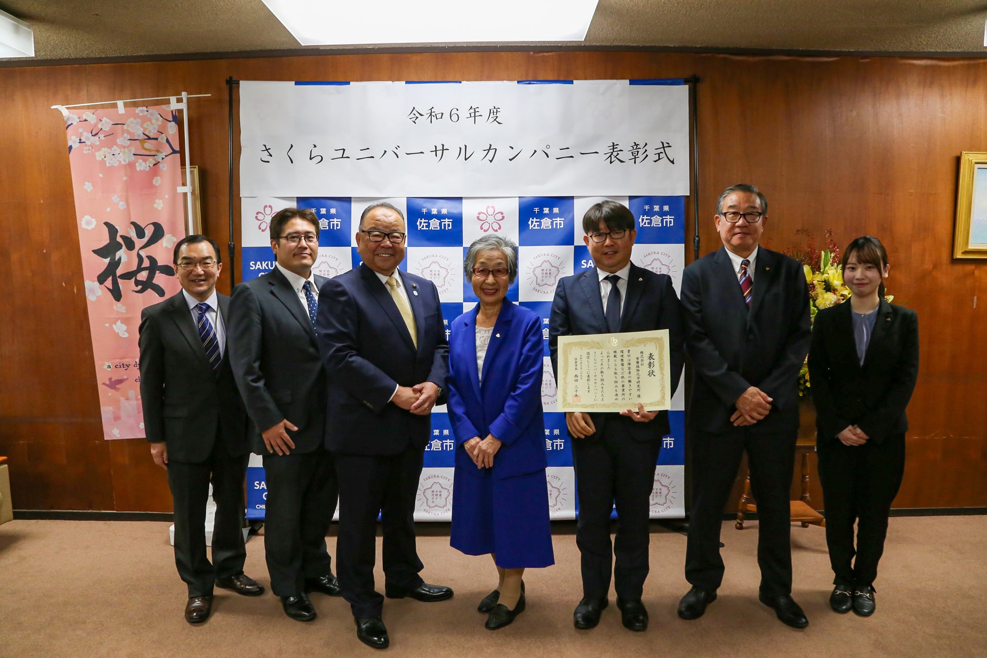 「さくらユニバーサルカンパニー」は、障害者の働きやすい環境を整えたりするなど、他の事業所の模範となる事業所を表彰する制度です。令和6年度は「株式会社常磐植物化学研究所」を表彰し、10月29日(火)に佐倉市役所にて、市長から表彰状を授与しました。