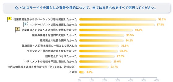 株式会社アドバンテッジリスクマネジメントは、パルスサーベイ(*)の導入実態に関するアンケート調査を実施いたしました。