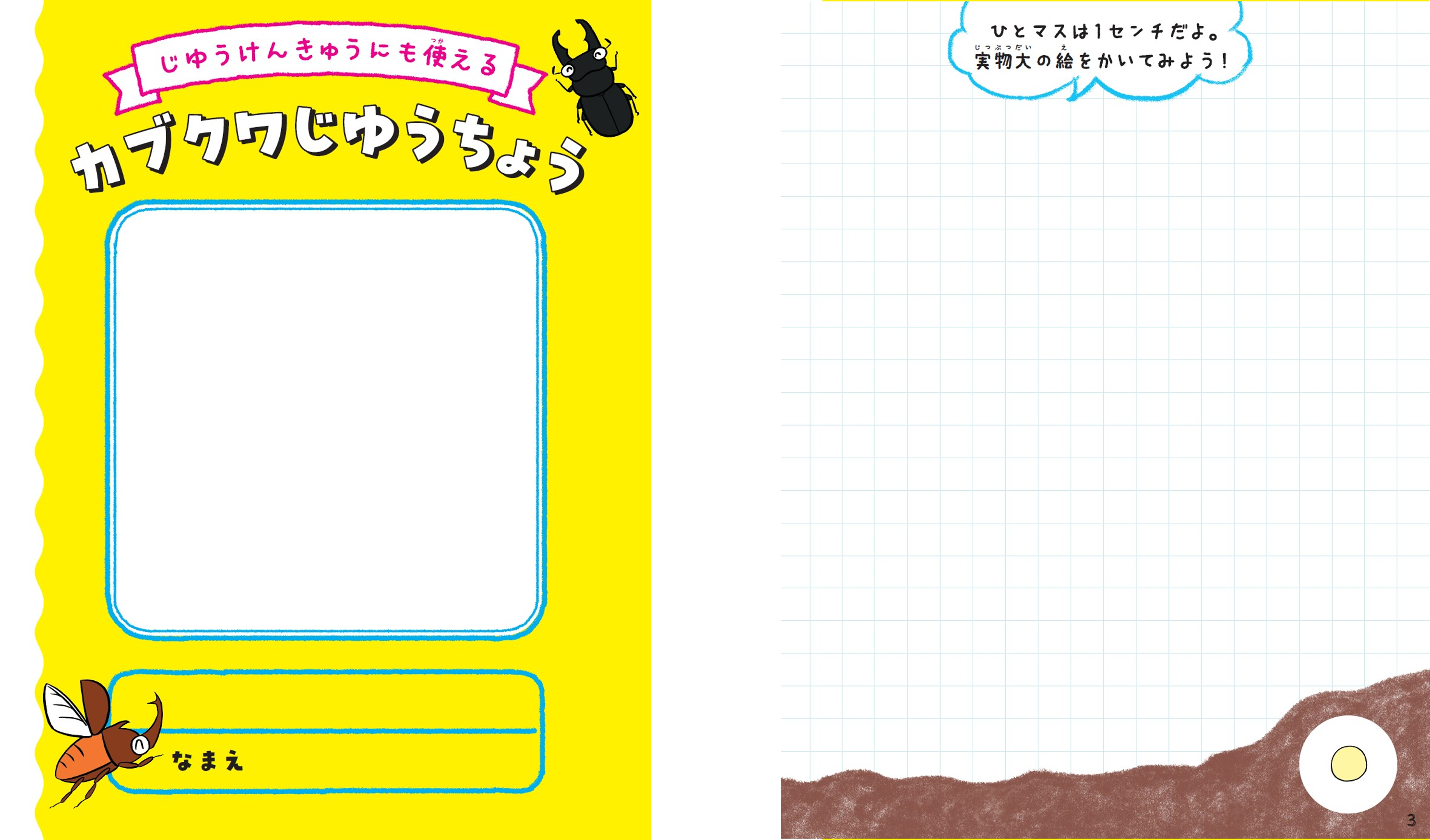 飼育写真を貼ったり、観察したことを絵や文字で記録したりなど、子どもが自由に活用できる「じゆうちょう」。ワクワクがつまった唯一無二の研究ノートをぜひ作ってみてください。