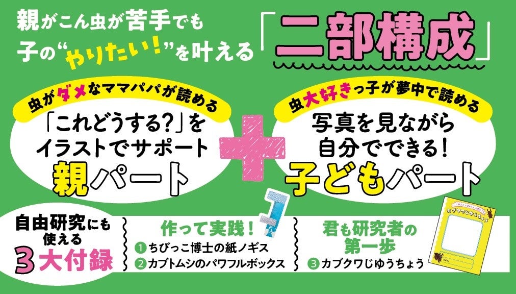 この“同じながらも相反する両者の思い”に、虫がこわくてしかたがない現役ママ編集者たちが向き合った結果、従来の昆虫飼育本にはなかった新しい1冊が誕生しました!