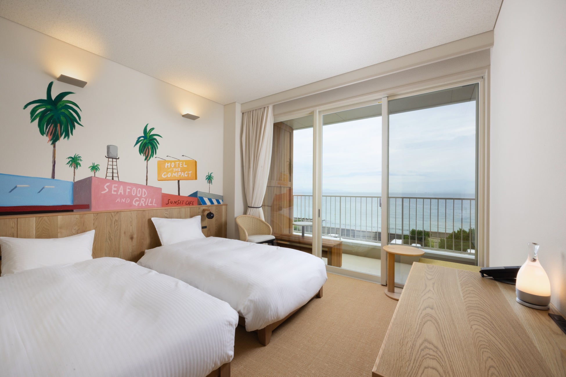 「HOTEL THE COMPACT」が提案するのは、自分主体の自由なスタイルで、淡路島の美しい自然にインスパイアされたアートや時間を楽しむ旅。10人のアーティストによるオリジナルアートを施した17室の客室に、開放感あふれるサウナ、ゲストのためのプールサイドバー、ベアフットで過ごしたくなるウッドデッキテラスなど遊び心にあふれ、フレンドリーな雰囲気をあわせもつ、楽しいがぎっしりつまった“COMPACT”な海ホテルです。