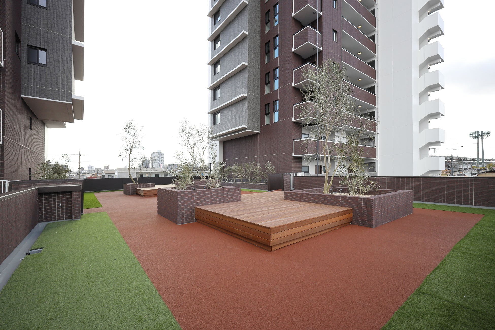 共用部には、コワーキングスペース、ゲストルーム、シェアキッチン、コインランドリーを設置しており、屋上太陽光発電設備、EV充電設備、EVシェアカー対応設備、屋上庭園など環境に配慮した設備も特徴です。
