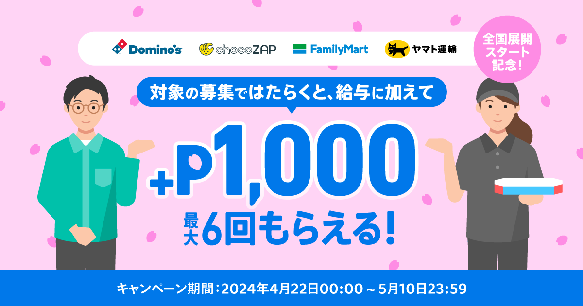 今回の全国展開に合わせて、スポットワークを始める人を応援するために、4月22日より全国展開スタート記念キャンペーンを開始いたします。