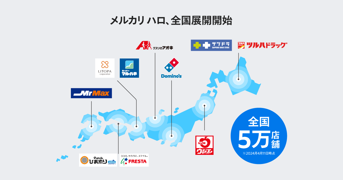 こうした反響をうけ、本日より「メルカリ ハロ」の全国展開を開始し、ドミノ・ピザなどの全国チェーン店のほか、ローカル企業を含む5万店舗の身近なお店で勤務が可能となります。