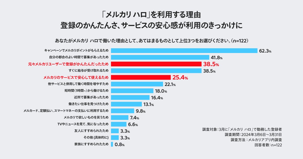 「メルカリ ハロ」を利用する理由:登録のかんたんさ、サービスの安心感が利用のきっかけに