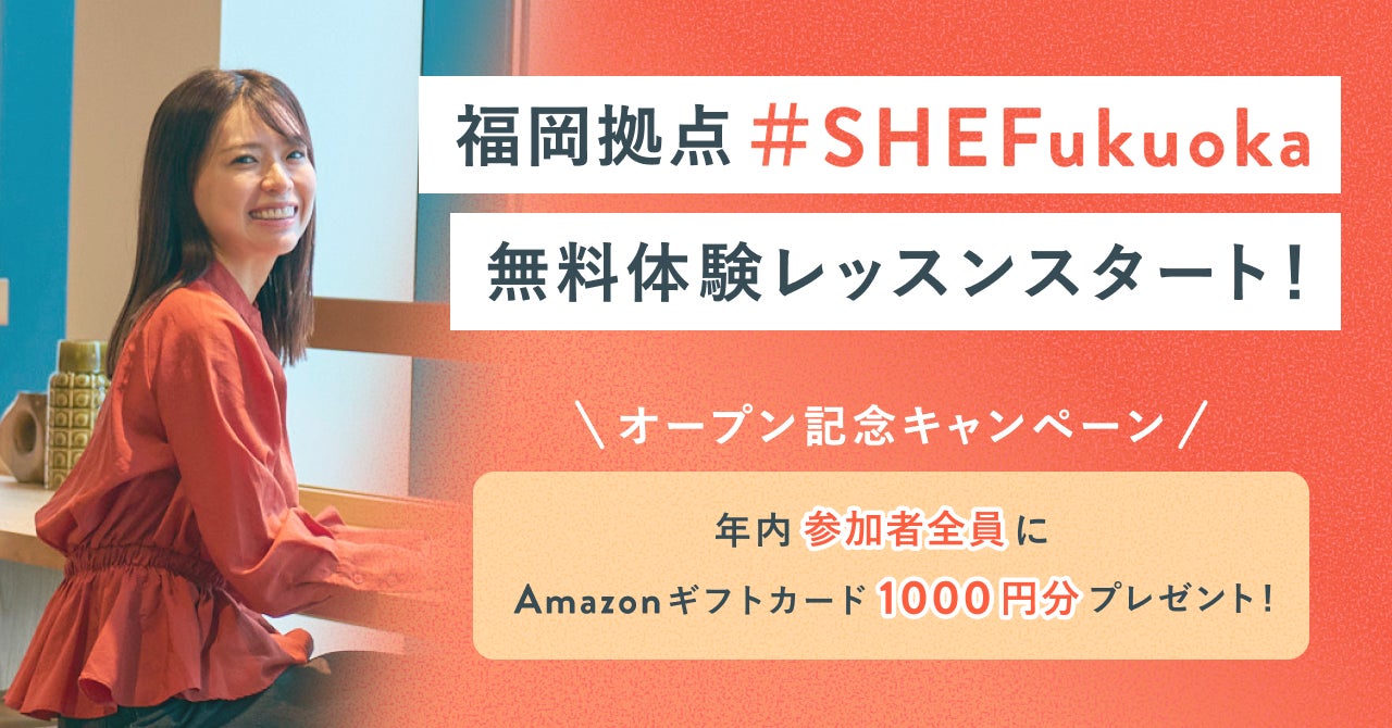 キャンペーン対象者:キャンペーン期間中にSHElikes無料体験レッスン(https://shelikes.jp/landing_pages_fukuoka)に申し込み、参加された方。