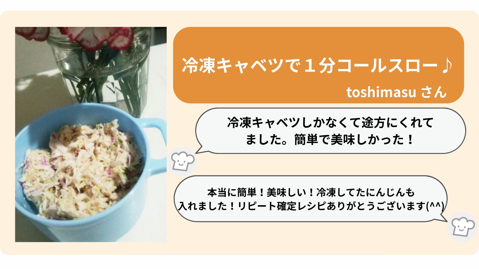 実際にクックパッドのユーザーからは、「生のまま冷凍できるとは便利」「冷凍できるんですね!」といった発見の声や、「冷凍しとくとスープや炒め物、ちょっと使い便利」「使い切れるか心配だったので冷凍保存しました」といった実践の声が寄せられています。「冷凍は劣化」ではなく、「時間を味方につける調理の知恵」──こうした認識の転換が、検索データの増加に表れています。