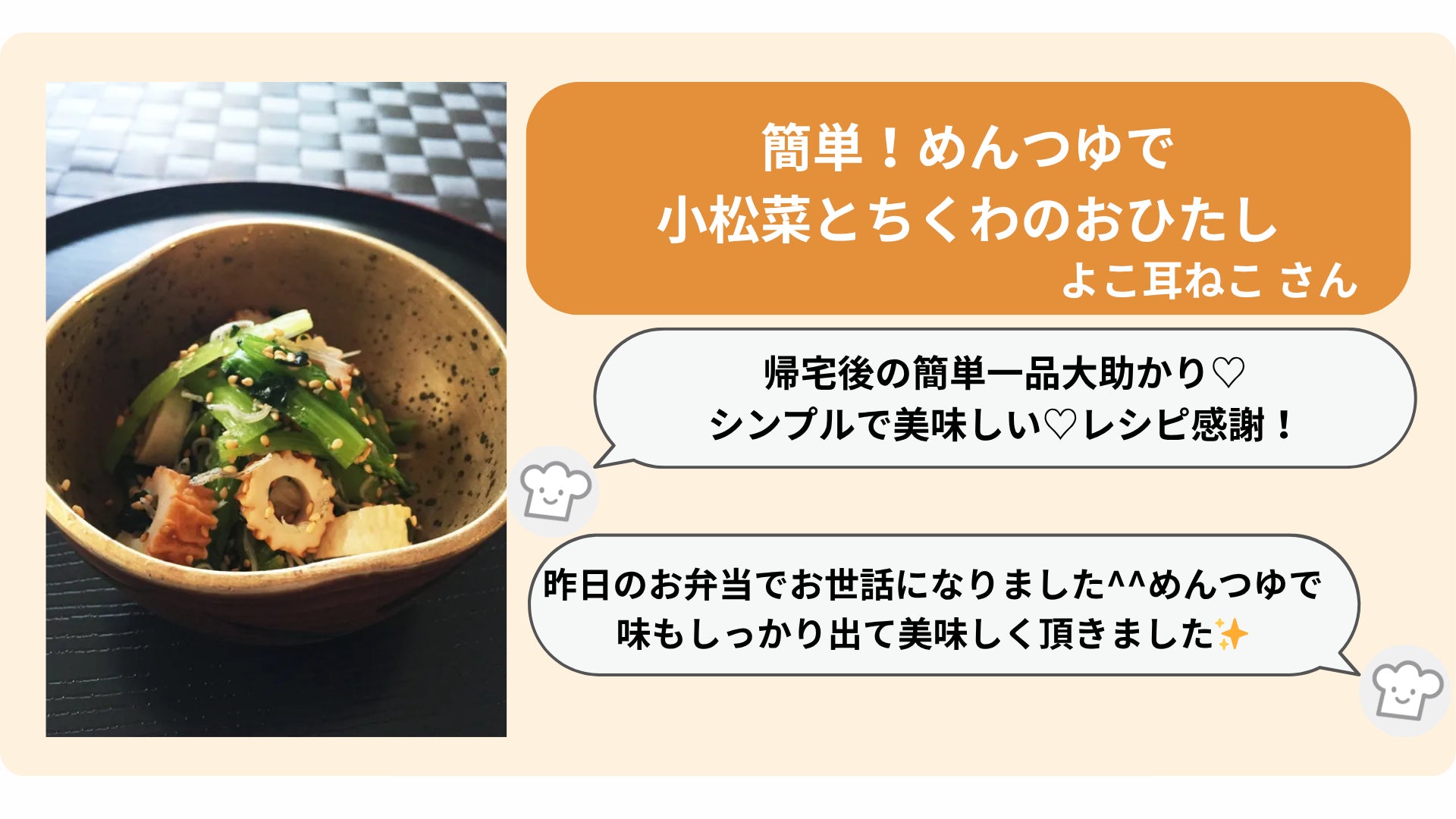 すべての食卓は、献立を考えるだけでなく、食品ロスという環境課題とも向き合っています。こうした知恵が地域や世代を超えて共有されるのは、インターネットがもたらした現代の大きな恵みです。クックパッドは、その知恵の循環を後押しし、「毎日の料理を楽しみにする」人を増やす活動を続けてまいります。