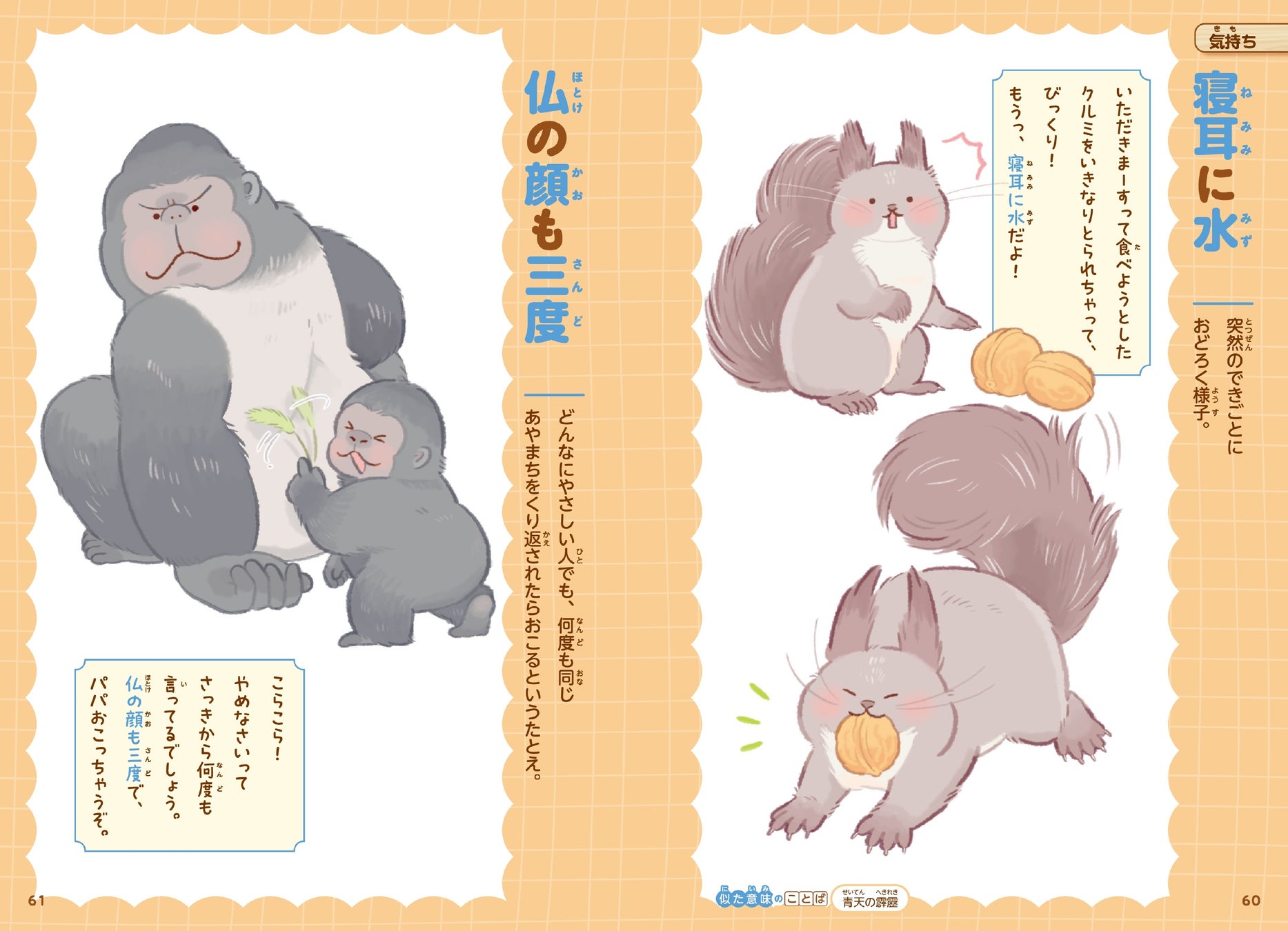 ●とにかくかわいいいきもののイラストで、ことわざをどんどん覚えられる!