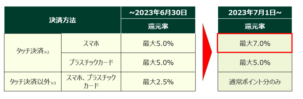 ※「対象のコンビニ・飲食店で最大7%ポイント還元」サービスと本キャンペーンは対象店舗が一部異なります。