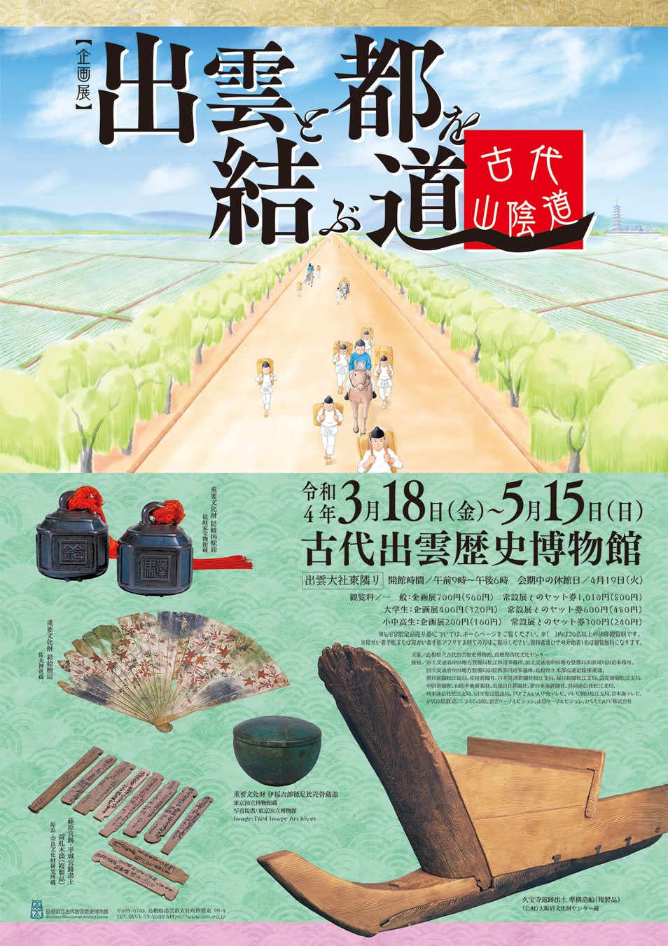 島根県立古代出雲歴史博物館では、令和4年3月18日(金)より、企画展「出雲と都を結ぶ道-古代山陰道-」を開催しますのでご案内いたします。