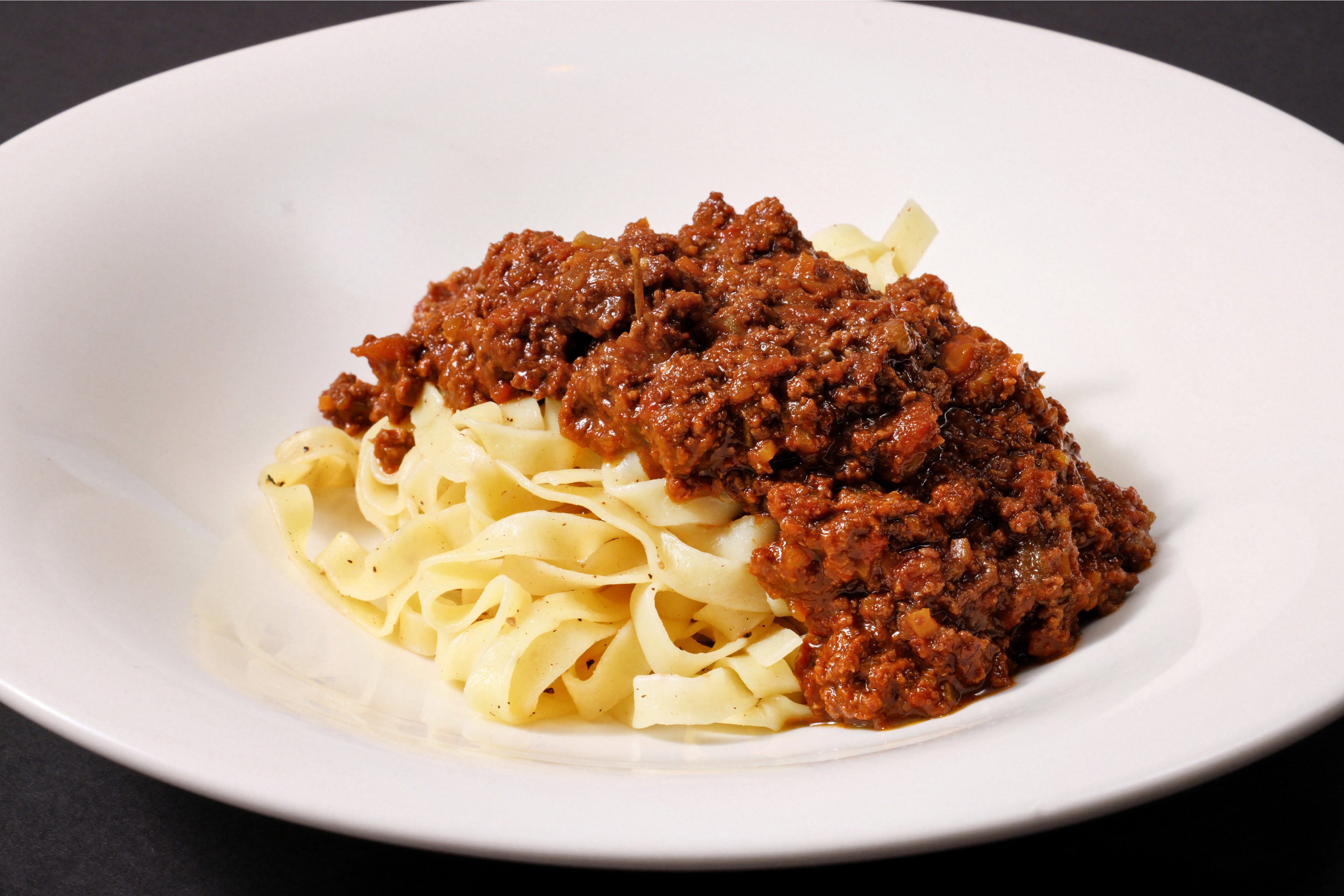 石垣牛をぜいたくに使ったボロネーゼ、石垣島産のハーブ、ローズマリーでアクセント。「からだにユーグレナ グリーンパウダー」を使用