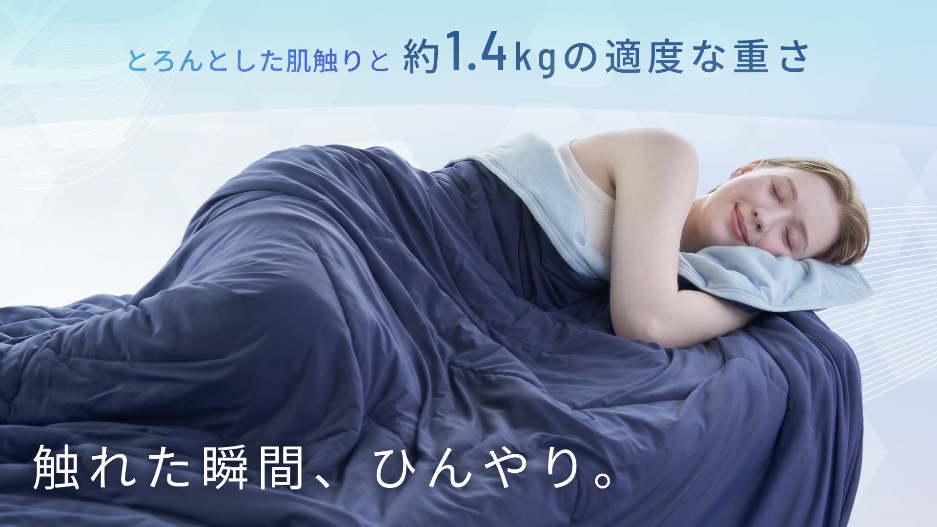 ひんやり感・吸湿性・約1.4kgの適度な重さを1枚に。気分や体感温度で"冷たさ"を選べるリバーシブル設計で、エアコン頼りになりがちな夏の夜の眠りを変える。