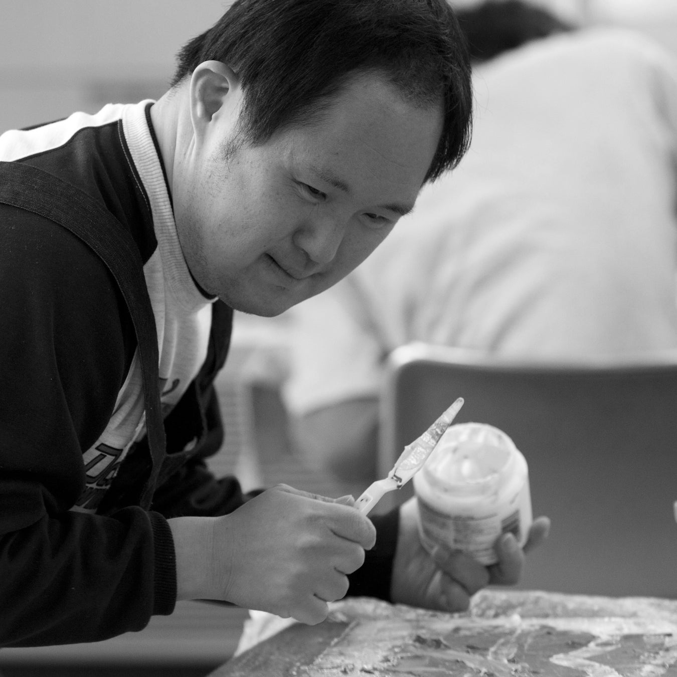 10歳のサマーキャンプで水彩画と出会って以来、自宅で「1日1枚」絵を描くのが彼の日課 。具体的なモデルはなく、その日の心の中にあるイメージに応じてパレットから数色の組み合わせを選び、ジェリービーンズや雨粒を彷彿とさせる水々しいタッチで大判画用紙を埋め尽くしていく。 色相が濁らないよう、米国製の透明水彩絵の具を愛用している。完成した絵を見た人が「きれいねー」と伝えると、嬉しそうに「きれいねー」とオウム返しする。余暇にはボストンのアートクラスで、さをり織り、ピアノ、ダンスを楽しんでいる。
