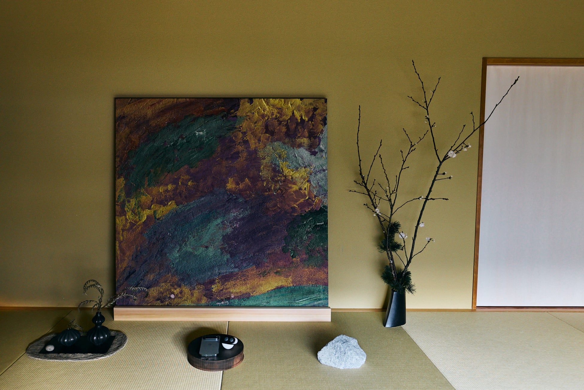 ヘラルボニーの契約作家5名X作品のアートが、各部屋を彩ります。伝統的な京都の町家と現代アートのコラボレーションが、感情をさらに豊かにします。