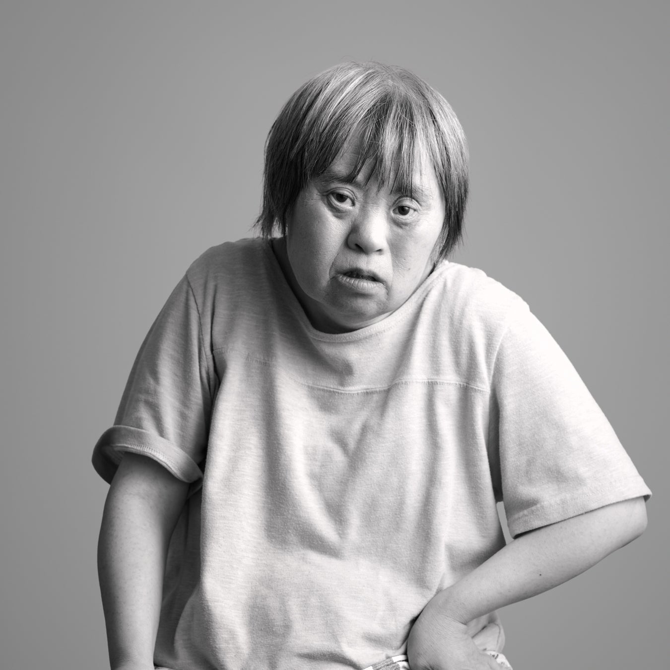 1986 年生まれ。またの名を巨匠。ただ無心に、ただ几帳面に、好きな世界遺産や広大な風景の写真を描く。無数の緑色がとくに美しい。赤と緑を同じ色に感じるので、青磁の壷をやさしいピンクに描く。仏像の名前はどれもピタリと言い当て、道ばたにお地蔵様を見つけては立ち止まり、拝礼。最近の好みは野菜や昆虫、世界の風景やその中に人物が配された絵。薄緑色の顔の人物は、こちらを見透かすように真面目顔。