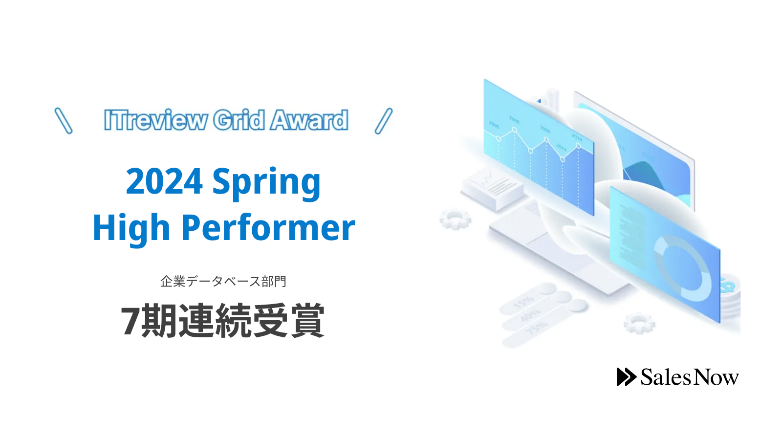 「SalesNow」が「ITreview Grid Award 2024 Spring」の企業データベース部門において7期連続受賞を達成!