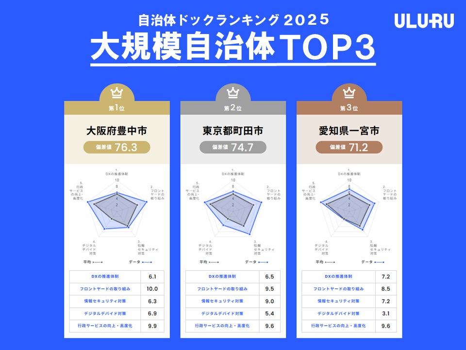 うるる、全国1,741自治体のDX推進度を”見える化” 「自治体ドックランキング2025」を発表 全国1位 大阪府豊中市、2位 大阪府堺市、3位 東京都町田市がランクイン