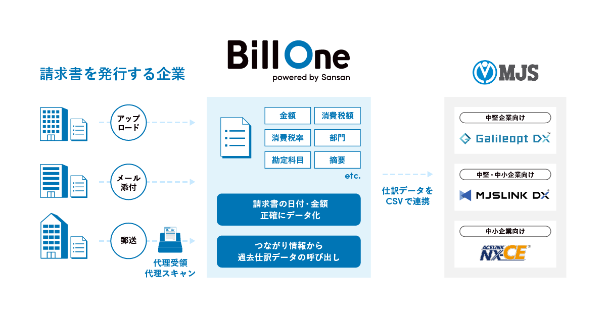 クラウド請求書受領サービス「Bill One」がミロク情報サービスが提供する3つの財務・会計サービス「GalileoptDX」「MJSLINK DX」「ACELINKNX-CE」と連携