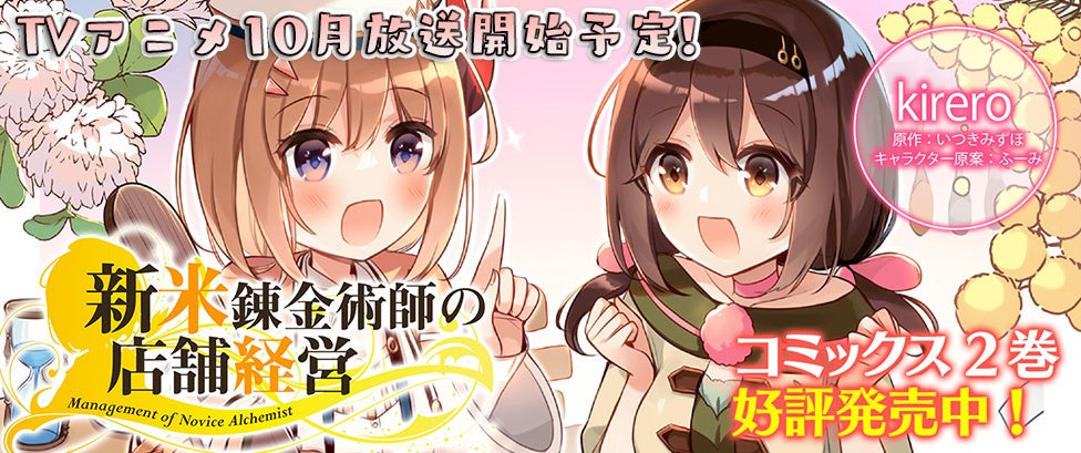 1巻2巻同時重版決定!10月からTVアニメも放送予定!『新米錬金術師の店舗経営』(ヴァルキリーコミックス)人気Web小説発!ぼっちでキュートなお仕事スローライフ!