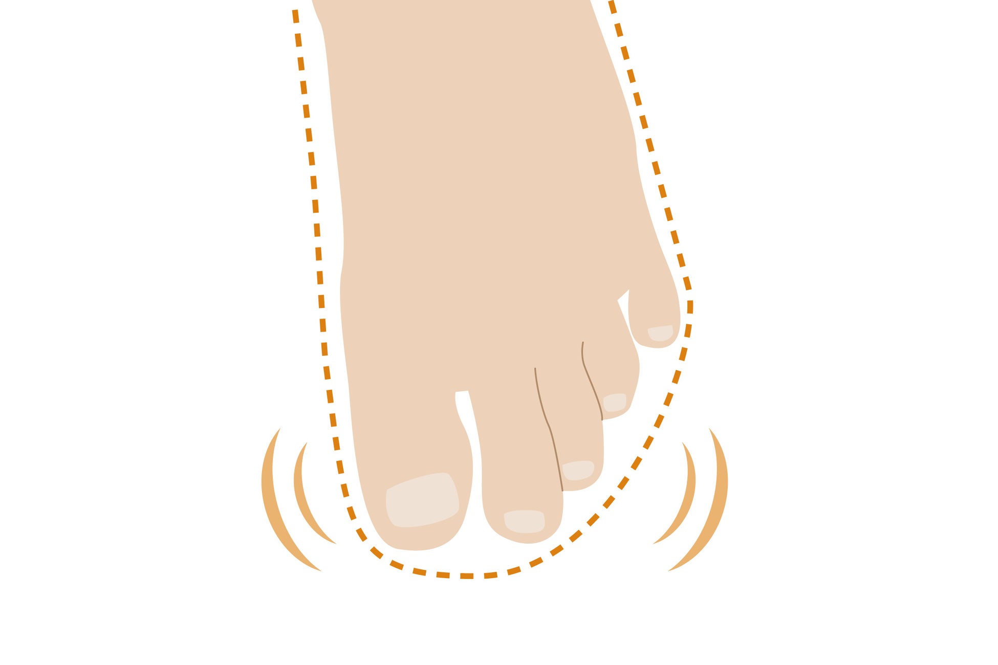 サッカースクールに通うジュニアプレーヤー300名以上の足を徹底的に分析。足囲だけでなく、つま先にもゆとりのある幅広設計に。指周りにスペースがあることで、素足感覚で足指がしっかりと使え、健康な足の育成をサポートします。