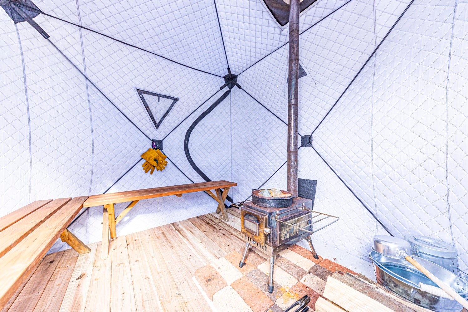 ◆気軽で安心なアウトドア体験、全天候型お食事スペース