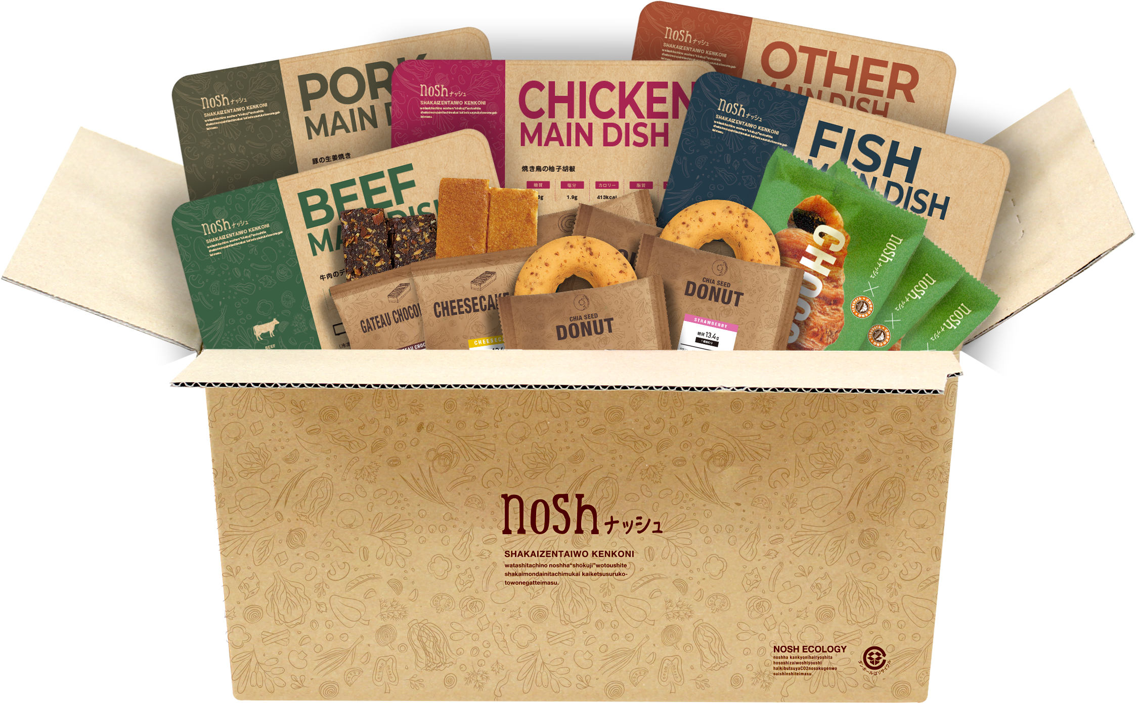 「社会全体を健康に。」を理念とする当社は、商品の企画・製造・販売までを一貫して自社で行っています。 多忙な毎日の中で健康的な食事の準備をすることは簡単ではありません。そうした中で、手軽に栄養管理ができる「nosh」は、自宅に常備される“国民食”となることを目指しています。自社専属シェフと管理栄養士が開発したすべての商品は糖質30g以下、塩分2.5g以下の栄養価を満たし、常時60品以上の商品は継続的にご満足いただけるよう、毎週3商品の新アイテムを投入しています。2018年に「nosh」を販売開始。