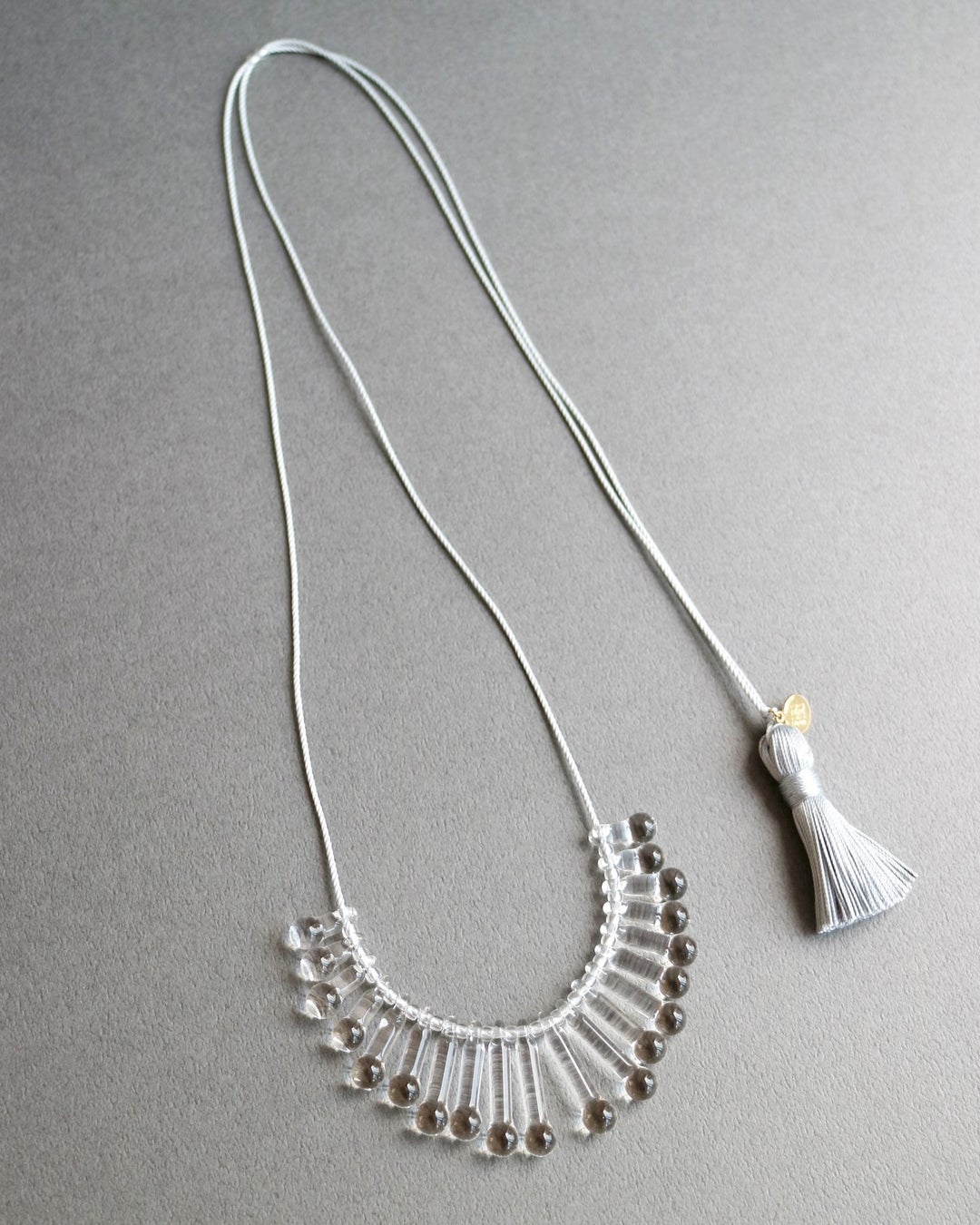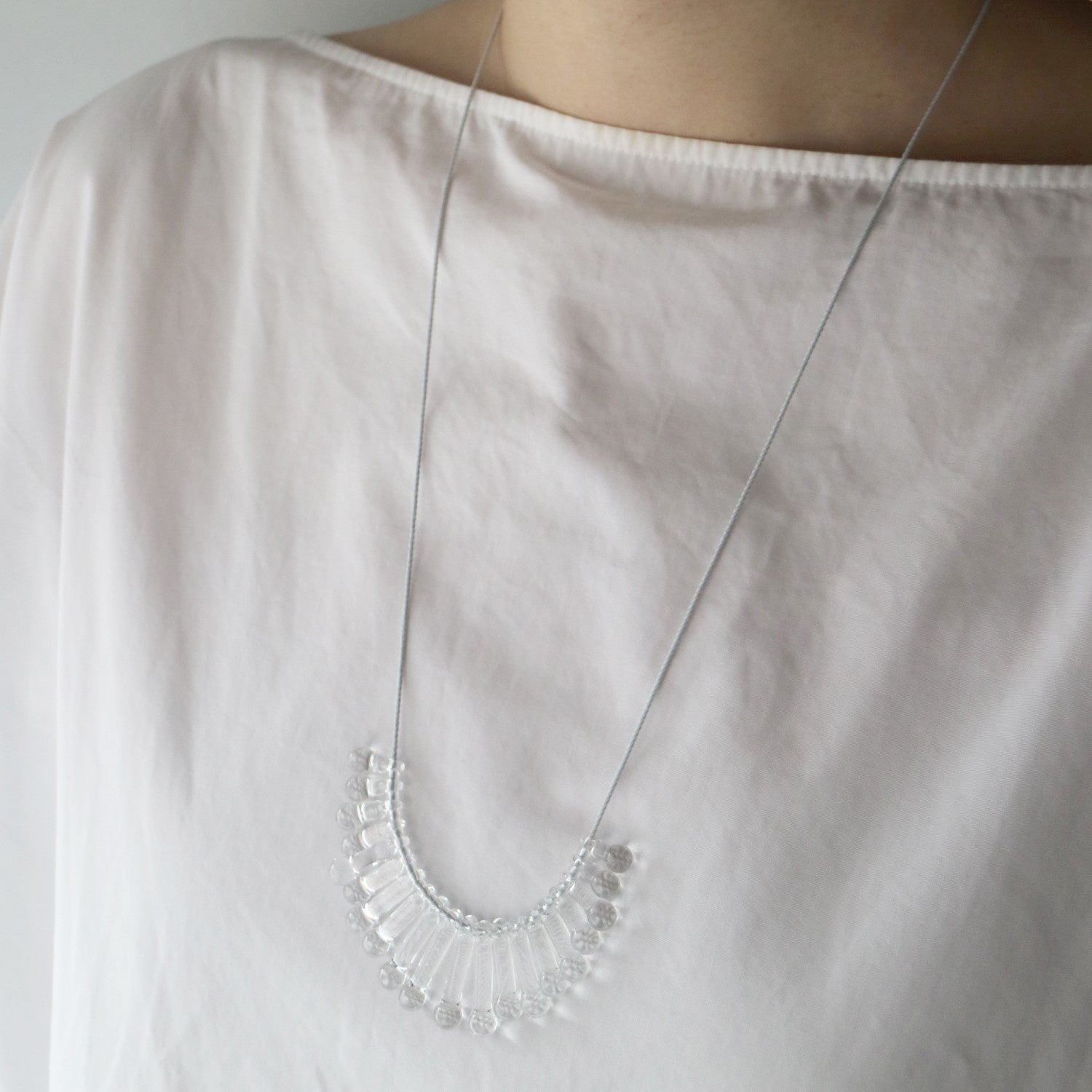 EXCAVATION Necklace Moiは古代に祭礼などで身につけられた装身具をイメージした、ガラスの輝きのみならず、生み出される影も美しいプリミティブな印象のネックレス。