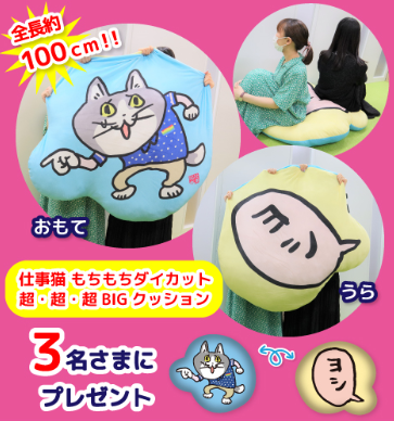 ■抽選で3名さまに「仕事猫 もちもちダイカット超・超・超BIGクッション」が当たるTwitterキャンペーンを開催中!