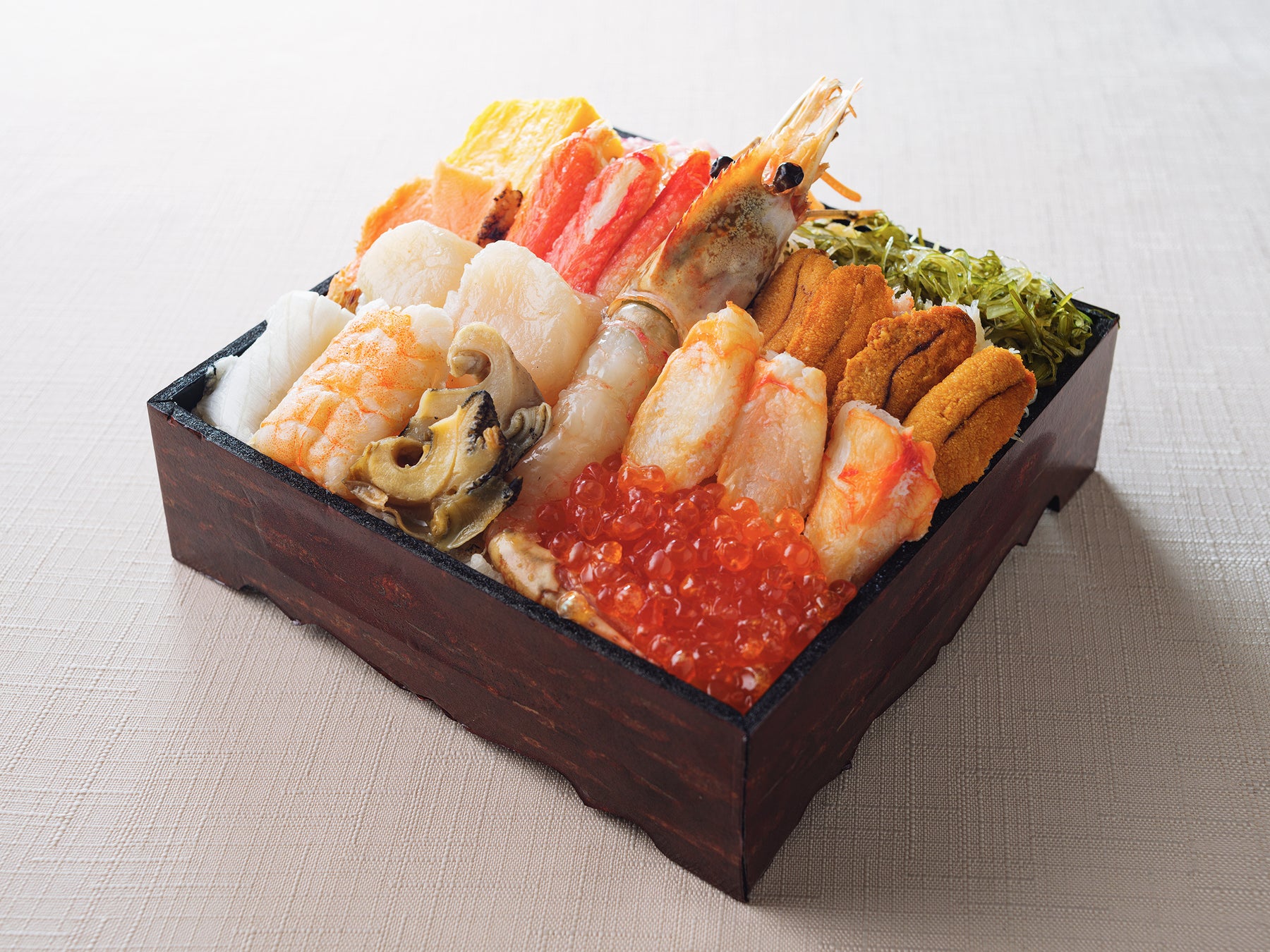 ぼたんえび、かに、いくら、ほたてなど12種類の海の幸を贅沢に盛り付けました。