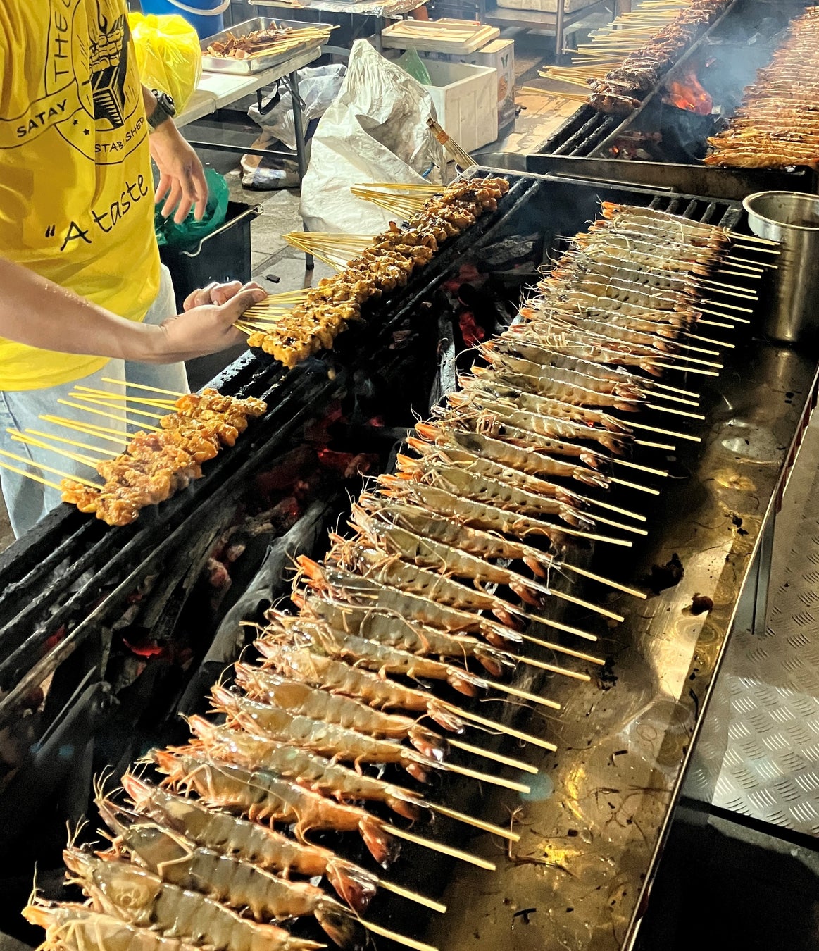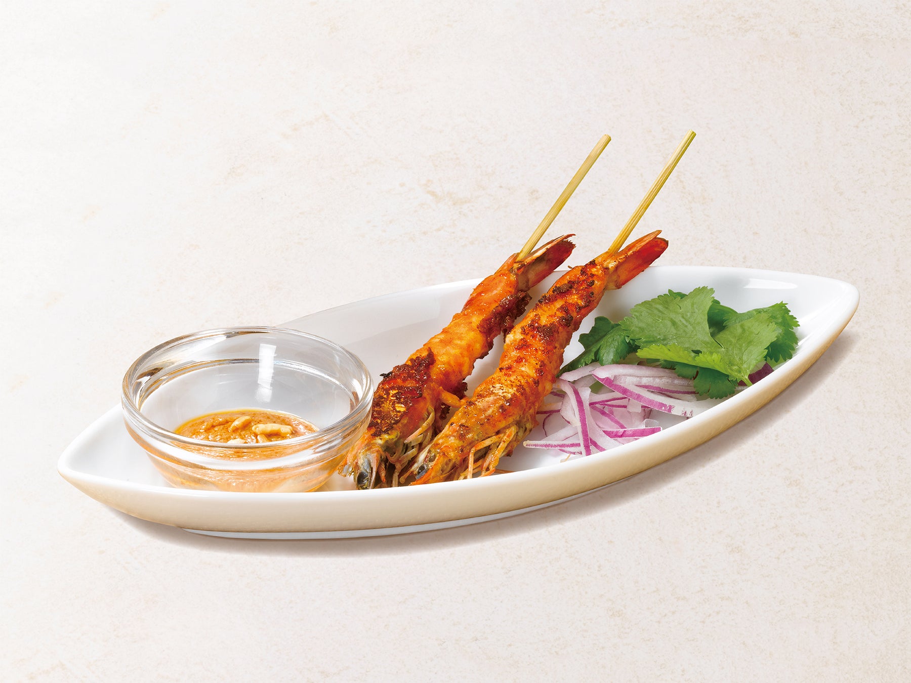 「サテー」は、シンガポールなど東南アジアの串焼き料理で、海老、チキン、ビーフなどがあります。本フェアでは、有頭海老を店舗で1本ずつ丁寧に串に刺し、ピーナッツ、レモングラス、カレーパウダー、ココナッツなど、甘みのあるソースでマリネして香ばしく焼き、ピリ辛のピーナッツソースを添えました。シンガポールのホーカーのように冷たいビールなどとご一緒にどうぞ。