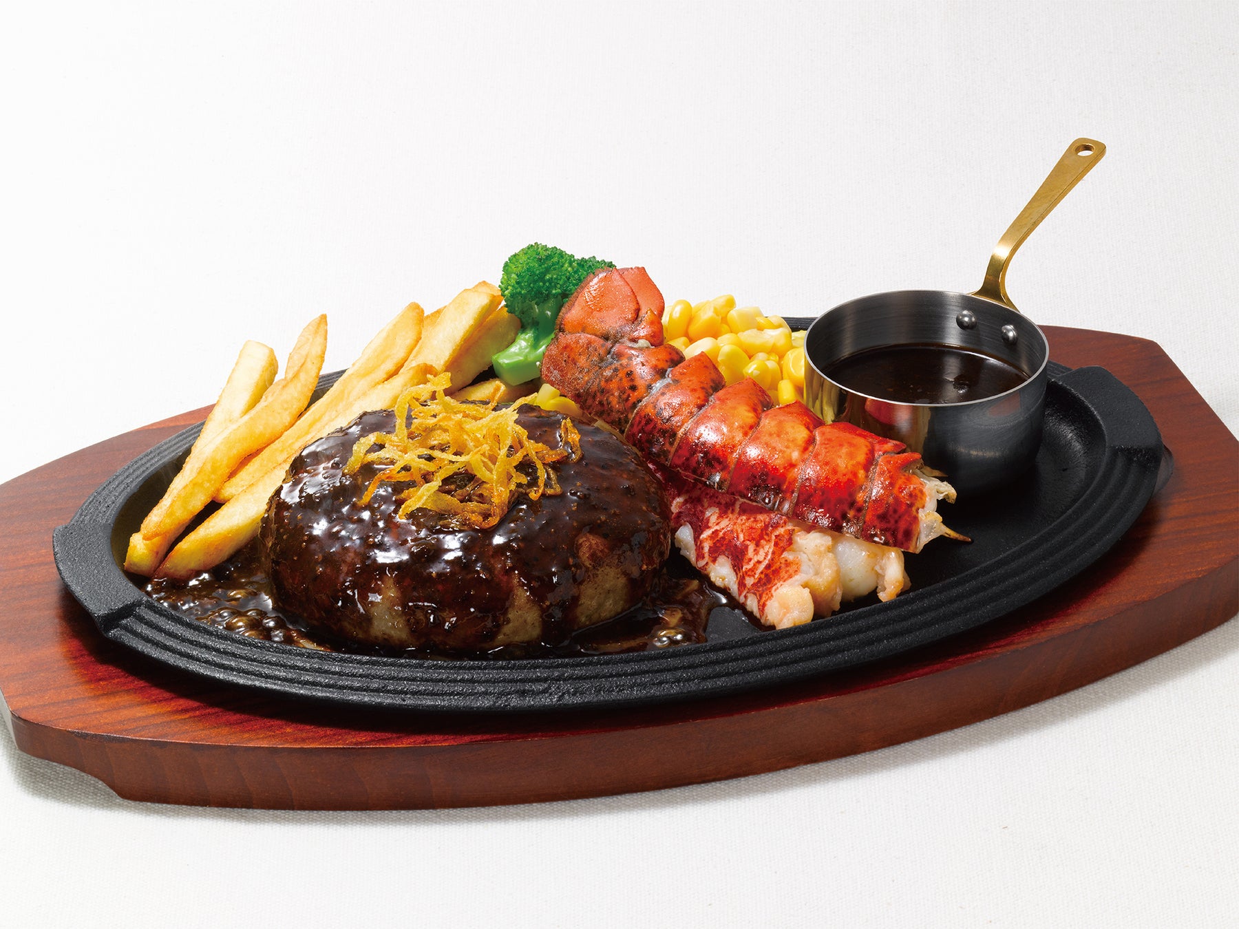 黒×黒ハンバーグ&オマール海老のグリル〜ブラックペッパーソース〜