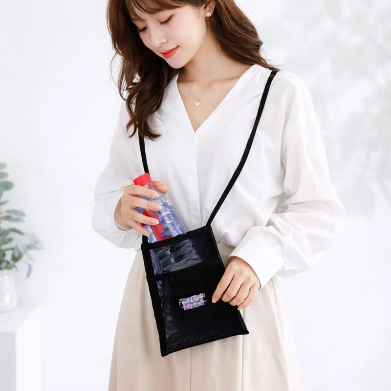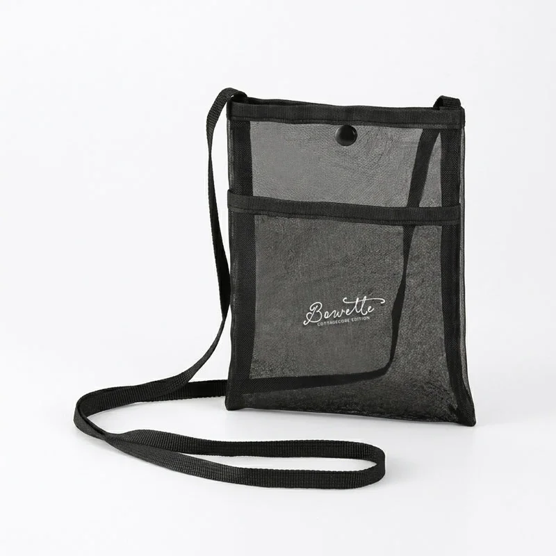 本商品は、軽量で薄型の設計が特徴のコンパクトなメッシュサコッシュです。通気性に優れたメッシュ素材を採用し、外出時でも快適に使用可能。約190mm×150mmのサイズ感で、必要な小物をスマートに持ち運べる実用性の高いバッグとなっています。