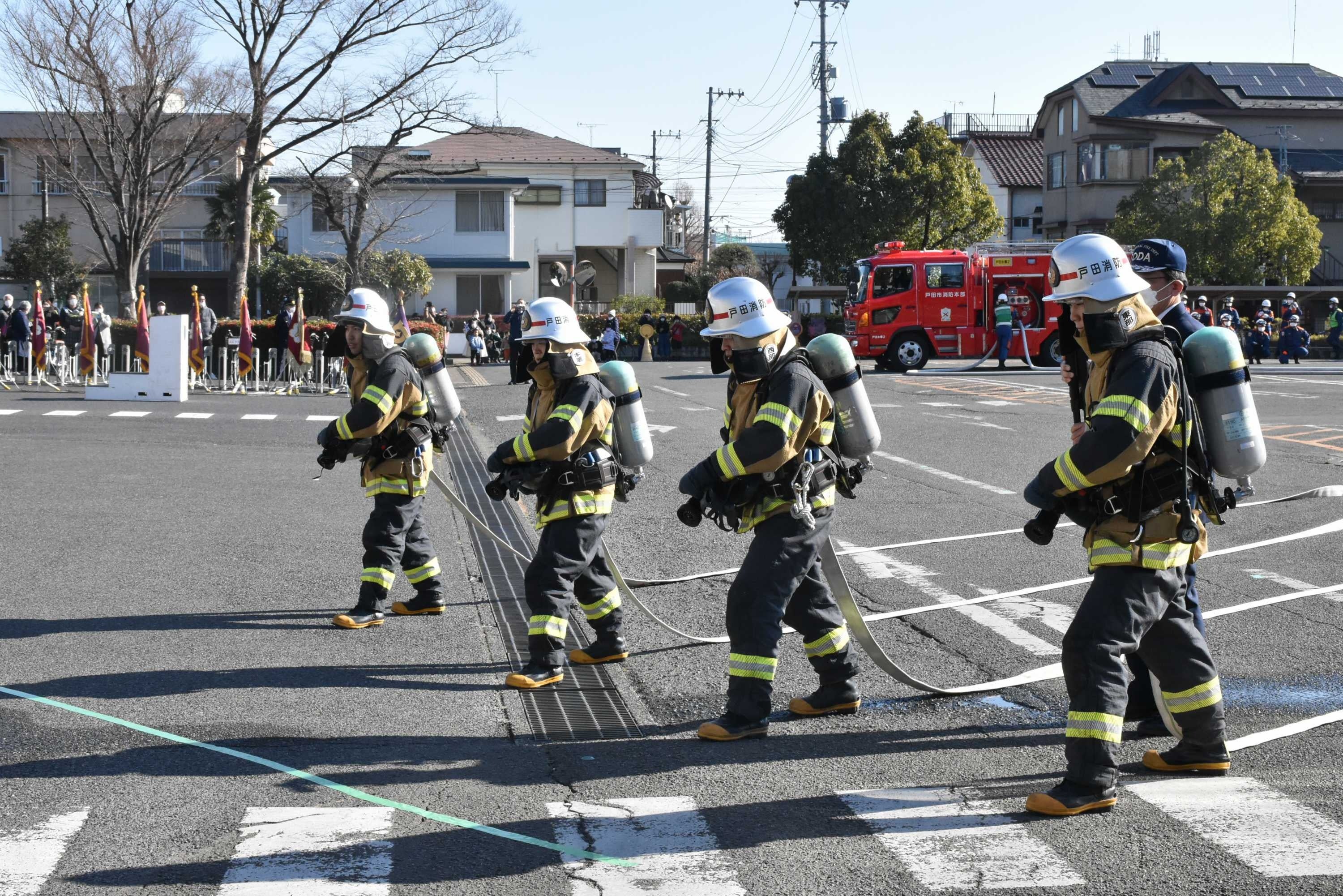 分列行進(車両行進、徒歩行進)、埼玉県防災ヘリコプターとの情報収集訓練、各種ポンプ車による一斉放水 など