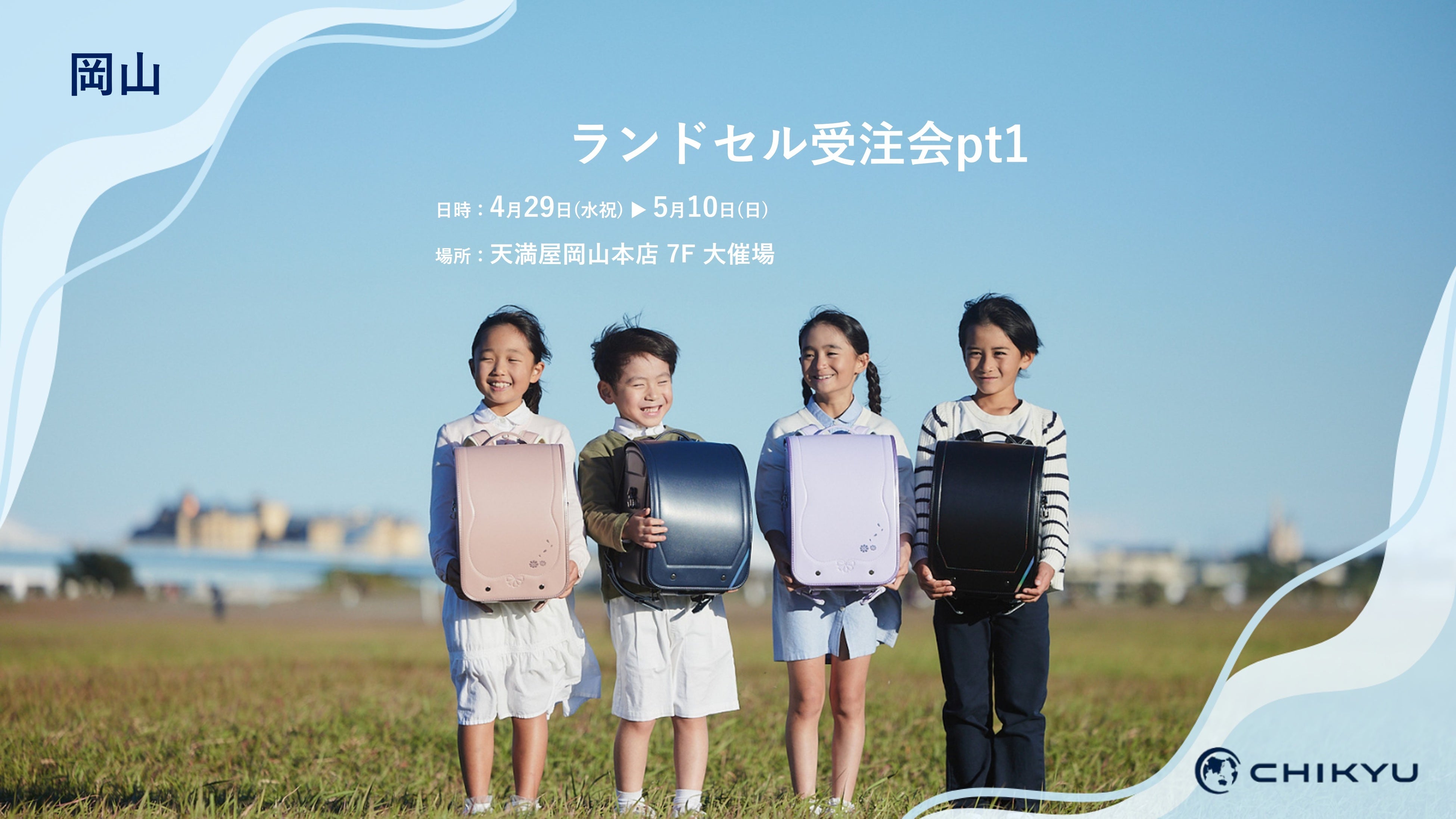ランドセルの企画・販売を行うCHIKYU株式会社(東京都港区、代表取締役:辻谷安央)は、岡山・天満屋岡山本店での「ランドセル受注会pt1」に参加いたします。